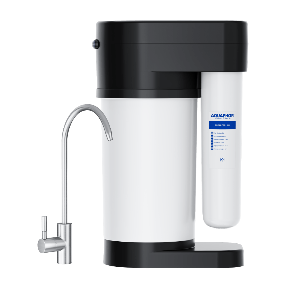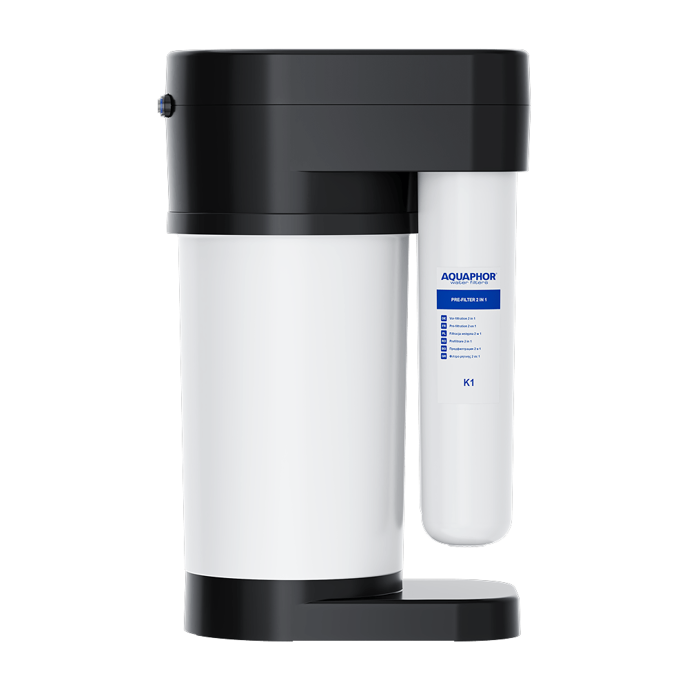 To deliver both the advanced prefiltration and dissolved impurities reduction at a time, K1 has two active filtration zones. The first stage removes sand and iron, filtering particles down to 10 microns. The second sorption stage, based on activated carbon enhanced with AQUAPHOR patented AQUALEN technology, reduces dissolved impurities down to 3 microns, including heavy metals, pesticides, and pharmaceutical residues.